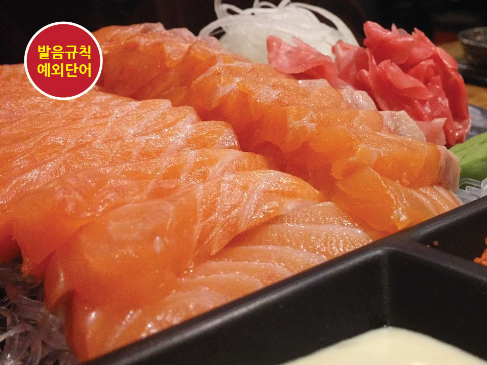 salmon : 모음 a 는 기본소리로 발음되며 l 은 묵음으로 발음하지 않습니다. 발음이 틀리기 쉬운 단어입니다.